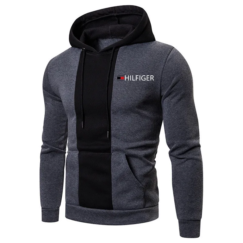 2024 Fashion Print Splicing Hooded Men's Fashion Splicing Hooded Sweatshirt Men's Spring Street Wear Casual Pullover Men's Coat