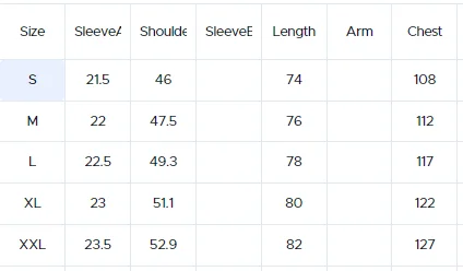 size_info: {"sizeInfoList":[{"length":{"cm":"108","inch":"42.52"},"size":"S","vid":-1},{"length":{"cm":"112","inch":"44.09"},"size":"M","vid":-2},{"length":{"cm":"117","inch":"46.06"},"size":"L","vid":-3},{"length":{"cm":"122","inch":"48.03"},"size":"XL","vid":-4},{"length":{"cm":"127","inch":"50.00"},"size":"XXL","vid":-5}]}